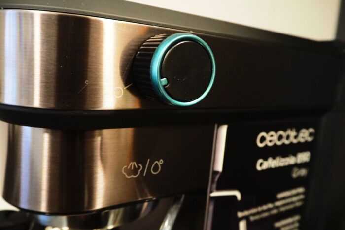 Con el botón de vapor encendido, giramos la rueda lateral de nuevo a posición de encendido y dejamos salir una buena cantidad de vapor para comprobar que funciona bien y además nos sirve para limpiar bien el conducto antes de su primer uso y familiarizarnos con su funcionamiento.