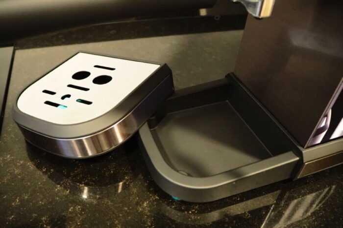 Pues la verdad es que solo le hemos encontrado un fallo a esta cafetera. Más espacio para vasos altos. Si veis el vaso térmico con el que hemos hecho las pruebas del cafe latte, no entra con la bandeja recoge gotas puesta, hemos tenido que quitarla y poner solo la pieza metálica, fallo nuestro también, el vaso era demasiado grande, pero no nos hubiera importado que tuviera altura regulable como en las megautomáticas Power Matic-ccino Cremma y Power Matic-ccino Vaporissima, ambas de Cecotec también.