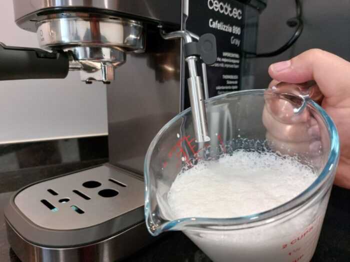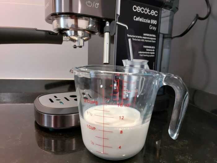 Espumar leche con la cafetera Cafelizzia 890 no es difícil, pero como todo en la vida, requiere algo de práctica. Hemos probado con leche entera recién sacada del frigorífico y el resultado ha sido aceptable. Insisto, con práctica mejoraremos pero para ser la primera vez y partiendo de leche fría, consideramos el resultado como bueno.