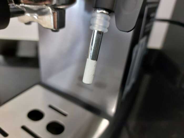 Como hemos comentado, la limpieza del brazo espumador hay que hacerla inmediatamente después de utilizarlo, asegurándonos de que no queda ni rastro de leche en el cilindro extraíble ni en el brazo vaporizador de la cafetera.