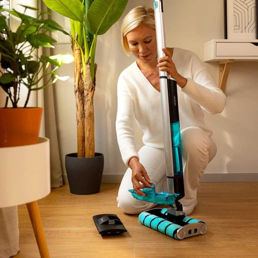 Esto la hace ideal para todo tipo de suelos, incluso los más delicados como el parqué o la tarima. La fregona eléctrica Conga Popstar 14800 Aqua cuenta con una base de autolimpieza, diseñada para limpiar los cepillos con facilidad después de cada uso. Esto contribuye al mantenimiento del producto y asegura su funcionalidad a largo plazo.