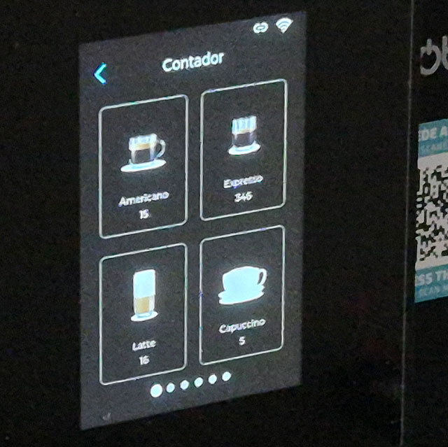 Desde mi experiencia personal, también tengo que destacar la pantalla táctil, especialmente el modelo Connected que es muy visual, te permite elegir el café que quieres, solo o con leche, y variar todos los parámetros: gramos de café, ml. de agua, temperatura del café, y si lleva leche, los segundos que debe estar sirviendo desde el tanque de 400 ml que llega a espumador para pacer bebedas tipo machiatto, capuccino, latte, etc.