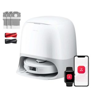 El depósito de polvo se vacía automáticamente en la base, mientras que las mopas se lavan y secan de forma autónoma. La batería ofrece suficiente autonomía para limpiar viviendas de tamaño medio sin necesidad de recargar durante la operación.